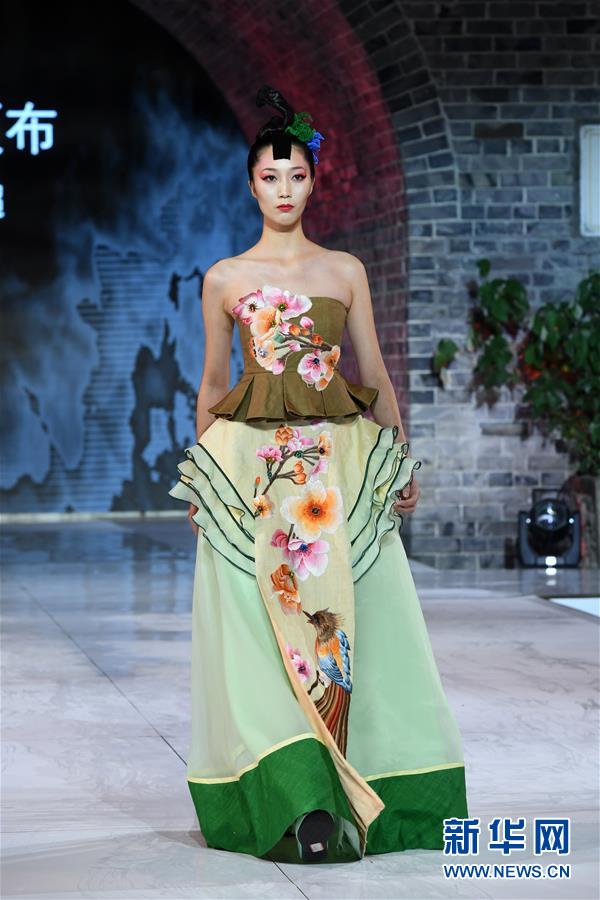 9月25日,模特在榮昌夏布·張義超非遺時(shí)尚大秀上展示時(shí)裝設(shè)計(jì)師張義超的時(shí)裝作品。 新華社記者 唐奕 攝
