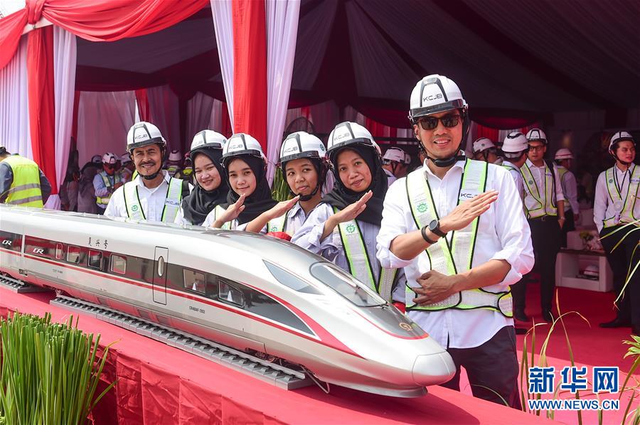 9月30日,在印尼雅萬高鐵首榀箱梁架設(shè)現(xiàn)場,幾名印尼嘉賓與“復(fù)興號”動(dòng)車模型合影。 印度尼西亞雅萬高鐵全線首榀箱梁9月30日架設(shè)成功,高鐵建設(shè)繼續(xù)穩(wěn)步推進(jìn)。雅萬高鐵全長142公里,最高設(shè)計(jì)時(shí)速350公里,2018年6月全面開工,總工期為36個(gè)月,今年是施工建設(shè)全面提速的關(guān)鍵年。建成通車后,雅加達(dá)至萬隆的時(shí)間將由現(xiàn)在的3個(gè)多小時(shí)縮短至40分鐘。 新華社記者 杜宇 攝