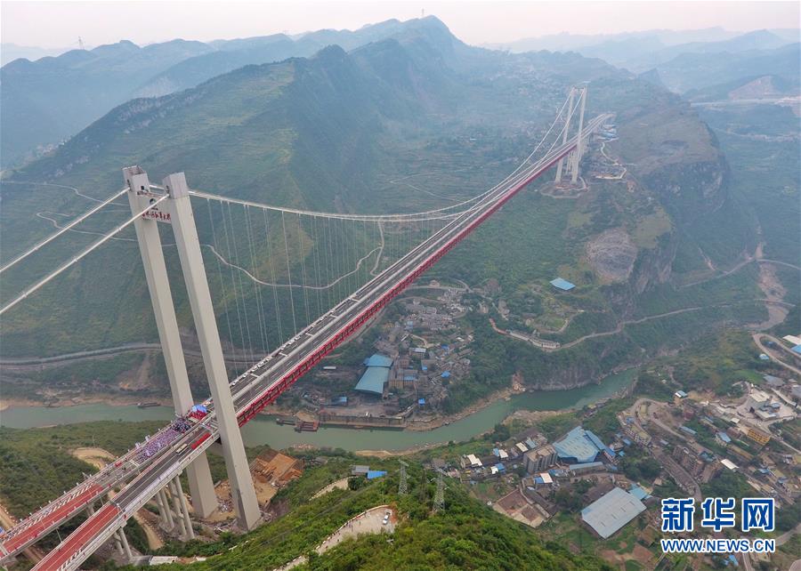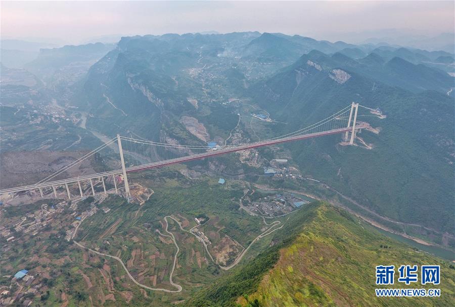 赤水河紅軍大橋全長(zhǎng)2009米,主跨1200米,主塔高243.5米,在全國(guó)山區(qū)同類型鋼桁梁懸索橋梁中排名前列,由四川省鐵投集團(tuán)投資、四川路橋集團(tuán)承建,于2017年上半年開(kāi)工。 新華社記者劉坤攝