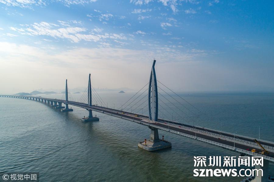 【世界最長跨海大橋——港珠澳大橋】港珠澳大橋東接香港、西接珠海和澳門,總長55公里。是中國第一例集橋、雙人工島、隧道為一體的跨海通道,同時也是世界最長跨海大橋。港珠澳大橋于2018年10月24日正式通車,屆時駕車從香港到珠海、澳門僅需30分鐘。