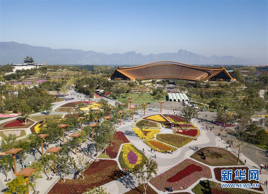 這是北京世園會(huì)園區(qū)一角(10月7日無人機(jī)拍攝)。 新華社記者 鞠煥宗 攝