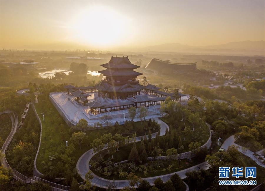 北京世園會園區(qū)內(nèi)的永寧閣(10月7日無人機(jī)拍攝)。新華社記者才揚攝
