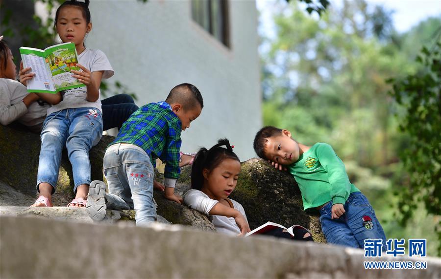 黔桂烏英苗寨的孩子們?cè)陂喿x剛剛獲贈(zèng)的圖書(shū)(10月11日攝)。