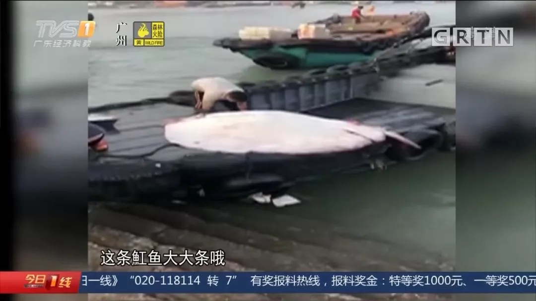 巨型“魔鬼魚”驚現(xiàn)碼頭,300斤!8名壯漢才能拖動?。ㄒ曨l)