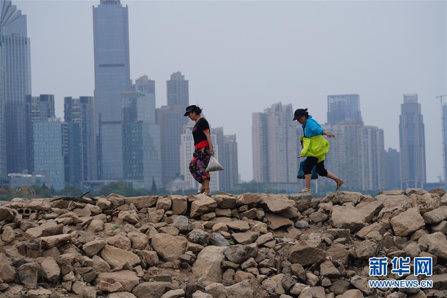 10月14日,兩名女士走在贛江南昌段露出的河堤上。當日16時,江西省氣候中心發(fā)布干旱橙色預警。由于連日少雨,贛江江西南昌段水位降至11.57米,大片沙洲露出水面。據江西省氣象部門統計,7月下旬到10月初,江西省平均降雨量96毫米,比多年均值偏少約七成。據介紹,江西省水利部門正在進行科學調度,積極做好引水防旱抗旱工作,其中南昌、九江、上饒、景德鎮(zhèn)4個設區(qū)市的13個縣(市、區(qū))共引水9717.6萬立方米,保障灌溉面積123萬余畝。 新華社記者 周密 攝
