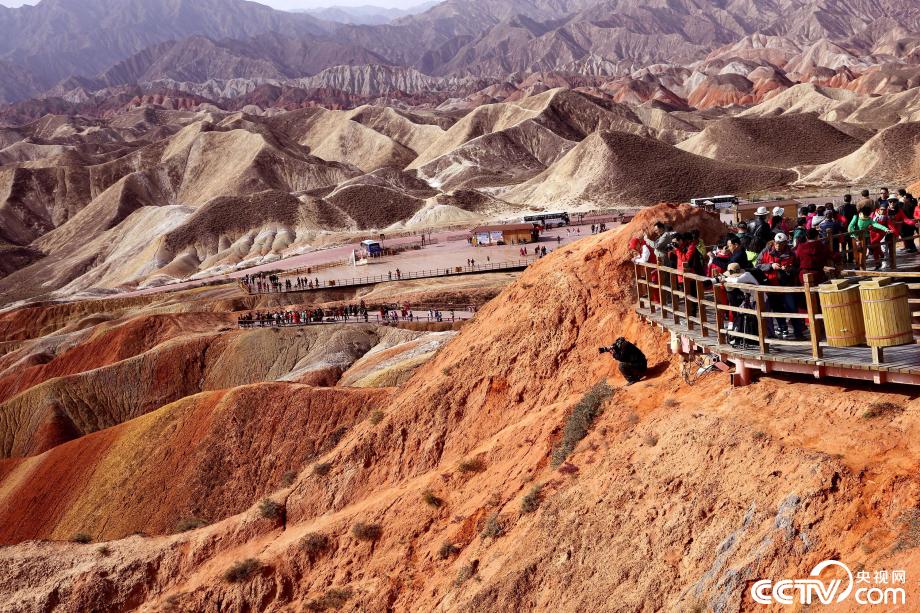 央視網(wǎng)消息:2019年10月15日,金秋時節(jié),位于甘肅省張掖市臨澤縣的七彩丹霞景區(qū)進(jìn)入旅游旺季,吸引眾多游人紛至沓來。張掖七彩丹霞景區(qū),分布面積約50公里,是中國北方干旱地區(qū)發(fā)育最典型的丹霞地貌。在方圓數(shù)十平方公里的范圍內(nèi),隨處可見有紅、黃、橙、綠、白等多種鮮艷的色塊或線條,把一座座山峰,一條條溝壑,裝點成一幅幅絢麗多姿、燦爛奪目的畫圖。圖片來源:視覺中國
