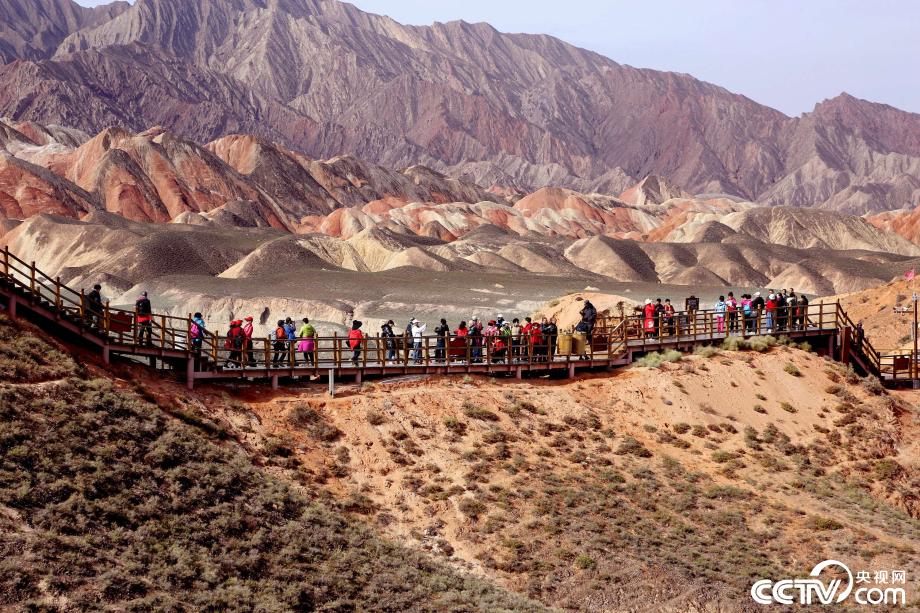 央視網(wǎng)消息:2019年10月15日,金秋時節(jié),位于甘肅省張掖市臨澤縣的七彩丹霞景區(qū)進入旅游旺季,吸引眾多游人紛至沓來。張掖七彩丹霞景區(qū),分布面積約50公里,是中國北方干旱地區(qū)發(fā)育最典型的丹霞地貌。在方圓數(shù)十平方公里的范圍內,隨處可見有紅、黃、橙、綠、白等多種鮮艷的色塊或線條,把一座座山峰,一條條溝壑,裝點成一幅幅絢麗多姿、燦爛奪目的畫圖。圖片來源:視覺中國