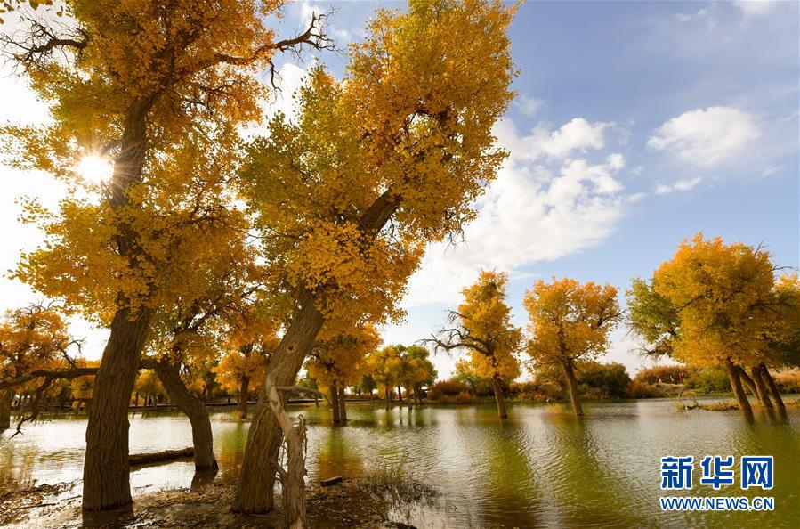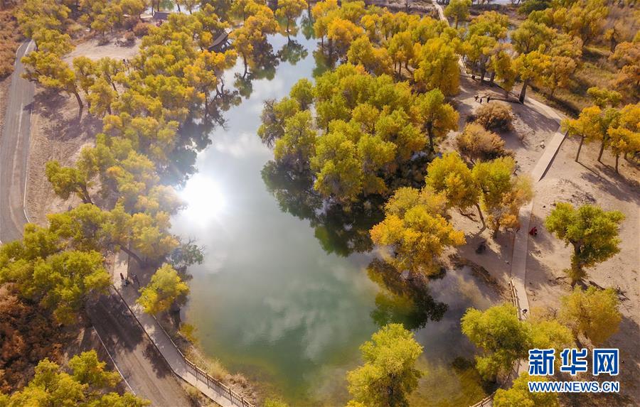 大片的胡楊樹(shù)葉由綠變黃,一眼望去,陽(yáng)光下金色的樹(shù)葉襯著湛藍(lán)的天空于風(fēng)中婆娑起舞。