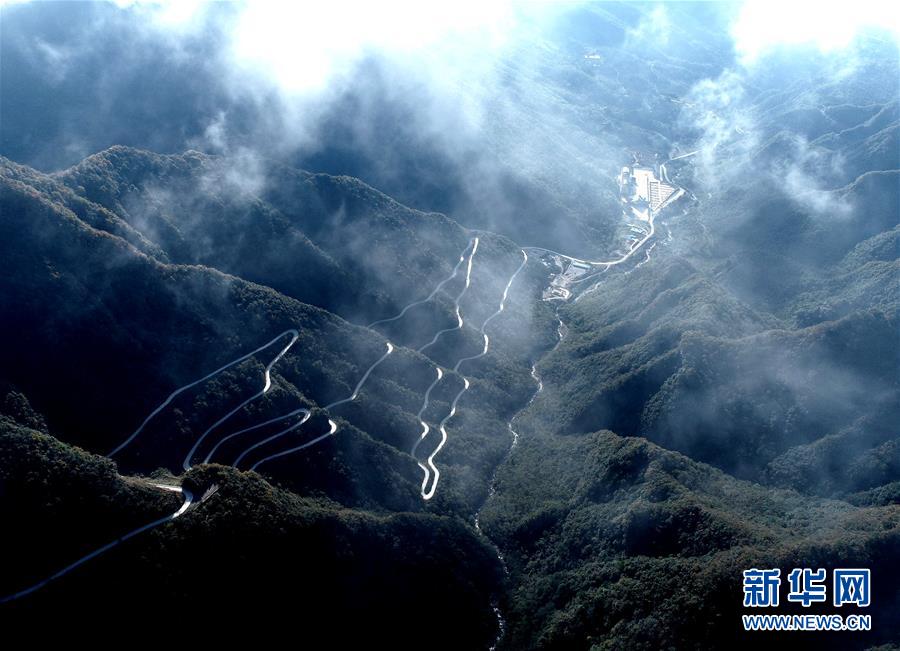 10月16日拍攝的漢中市南鄭區(qū)龍頭山風(fēng)景區(qū)(無(wú)人機(jī)拍攝)。 新華社記者 張博文 攝