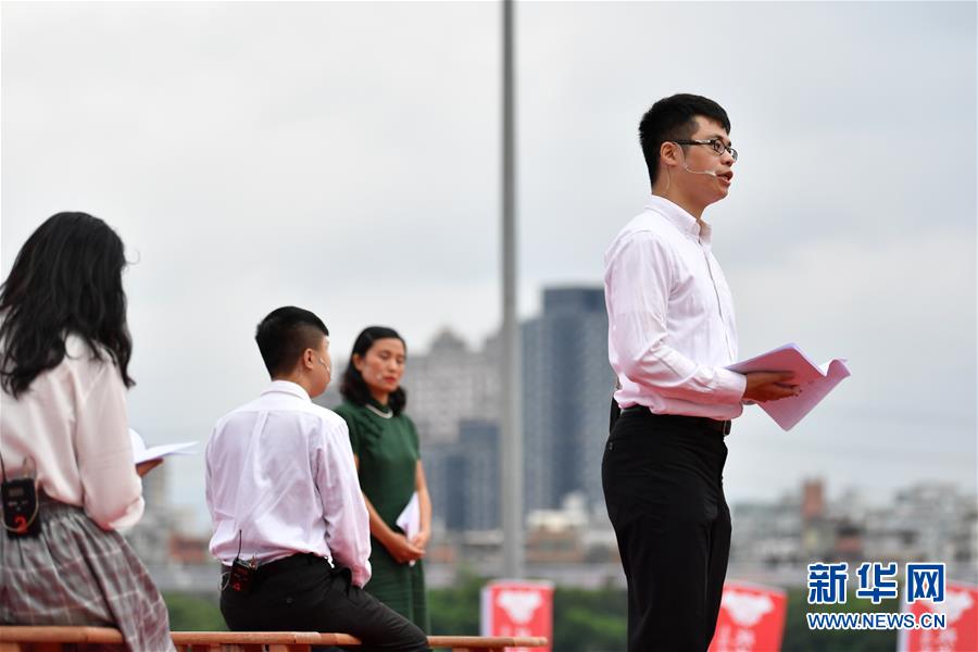 10月19日,參與秋祭活動(dòng)的年輕人在活動(dòng)現(xiàn)場(chǎng)表演行動(dòng)劇《激進(jìn)1949》。 新華社記者 陳斌 攝