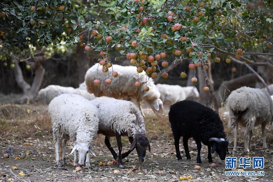 10月24日,羊群在敦煌市郭家堡鎮(zhèn)一處果園里覓食。