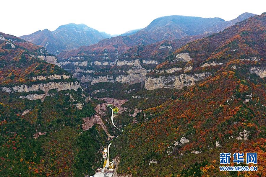 山西省靈石縣境內(nèi)的太岳山風(fēng)光(10月24日無(wú)人機(jī)拍攝)。