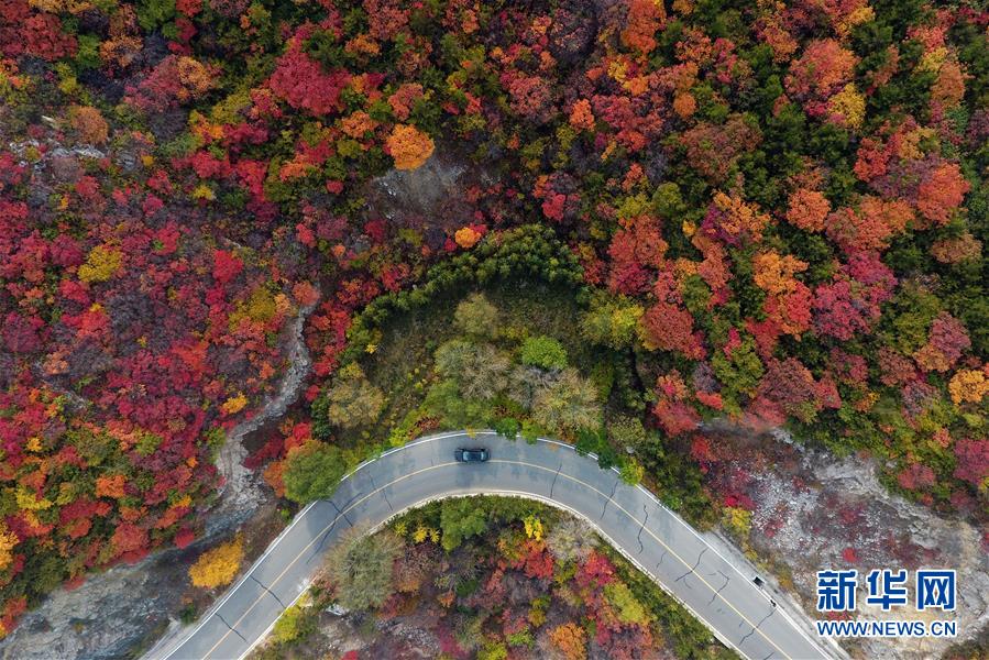 車輛行駛在山西省太原市玉泉山盤山公路上(10月22日無(wú)人機(jī)拍攝)。