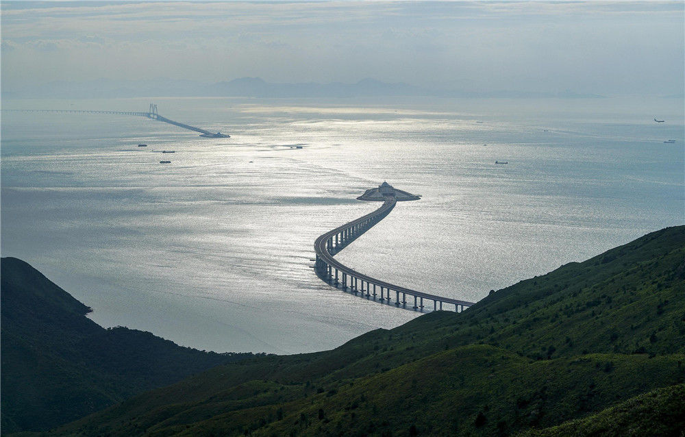 2018年7月17日,香港,從香港大嶼山遠(yuǎn)眺港珠澳大橋。港珠澳大橋開通在即,香港跨境巴士業(yè)界2018年9月12日表示,港珠澳大橋?qū)?huì)為粵港澳大灣區(qū)創(chuàng)造大量跨境巴士的旅客需求,整個(gè)行業(yè)將迎來“飛躍式發(fā)展”。張煒(香港分社)/中新社/視覺中國