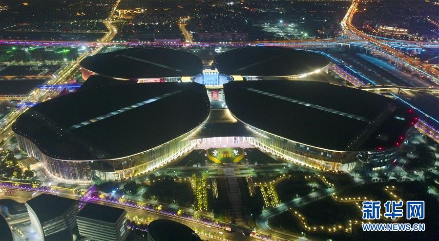 2019年11月5日,第二屆中國(guó)國(guó)際進(jìn)口博覽會(huì)將在上海開(kāi)幕。夜幕下的國(guó)家會(huì)展中心(上海)燈光璀璨,流光溢彩,靜待八方賓客。新華社記者丁汀攝