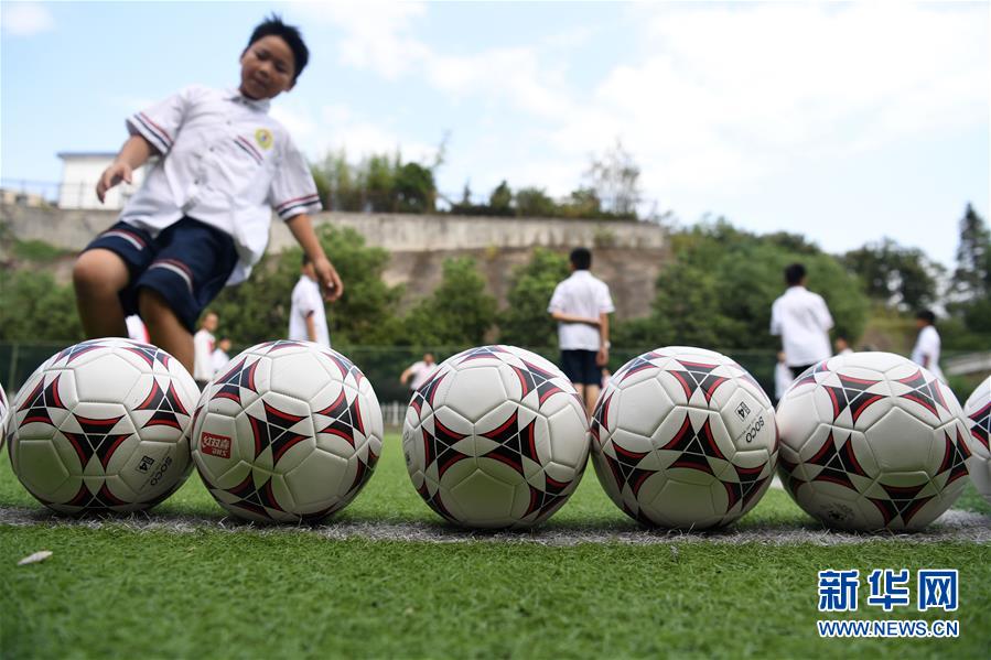 9月3日,金寨縣希望小學學生在足球課上訓練。新華社記者劉軍喜攝