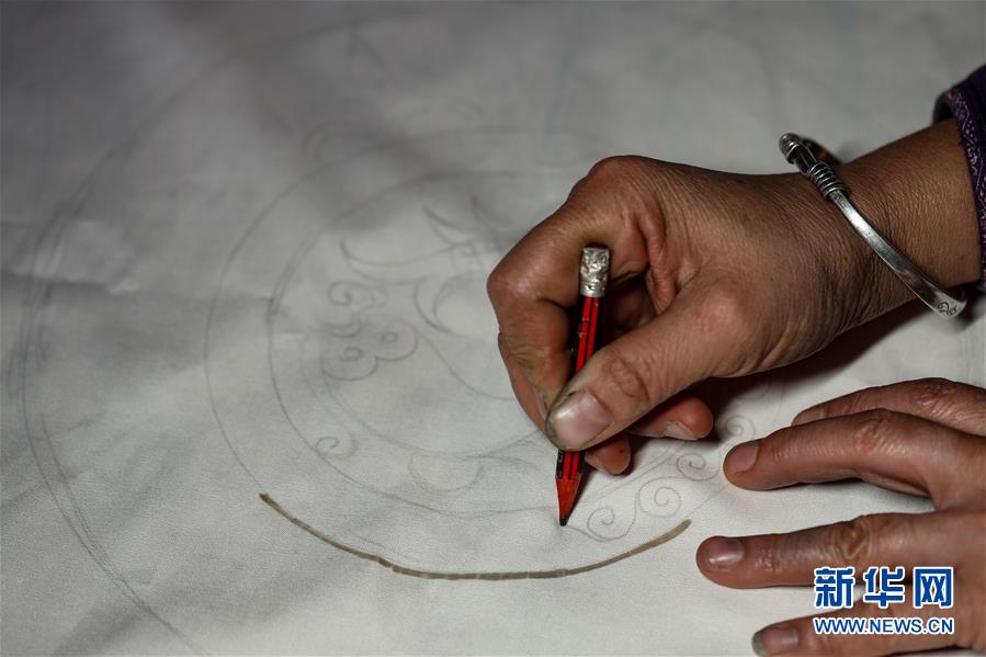 10月28日,楊芳在設(shè)計蠟染圖案。新華社記者 歐東衢 攝