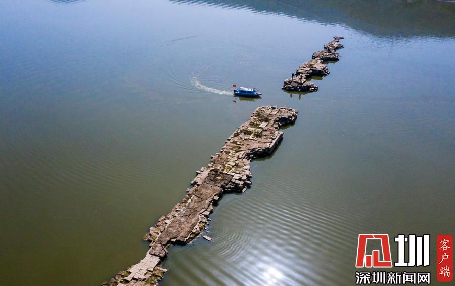 江西新余仙女湖水位下降 明代萬年橋再現(xiàn)容顏