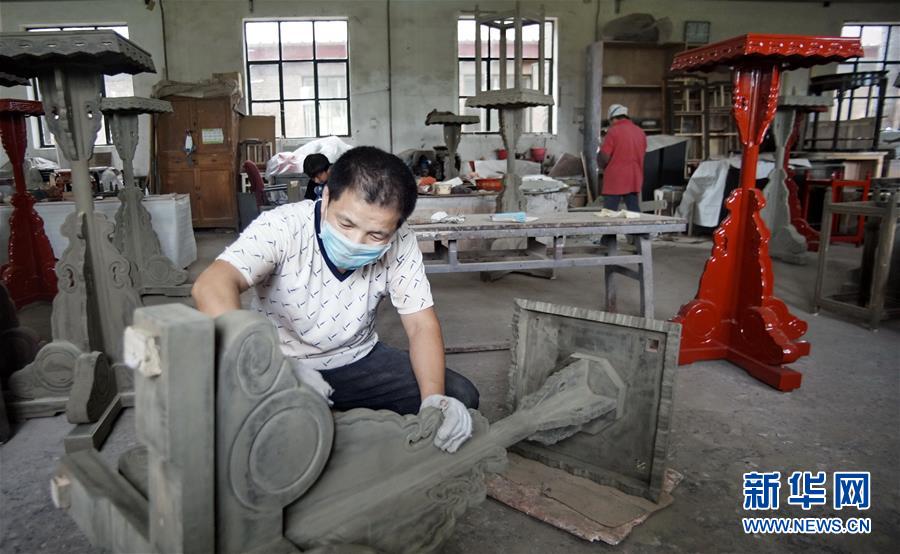 北京金漆鑲嵌有限責(zé)任公司的技師按照古代工藝制作宮廷宮燈(10月31日攝)。