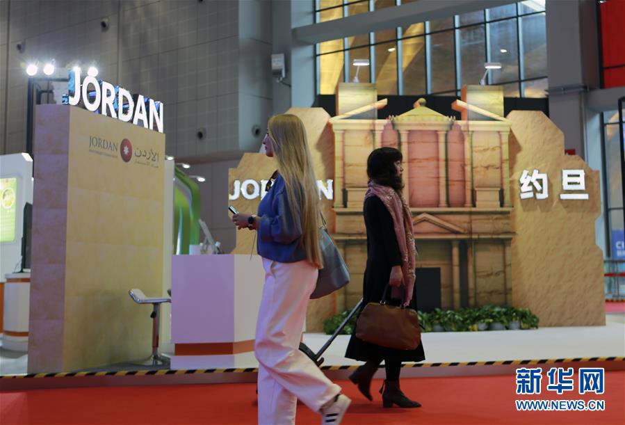 11月5日,參觀者走過(guò)第二屆進(jìn)博會(huì)約旦國(guó)家館。新華社記者鄭衛(wèi)攝