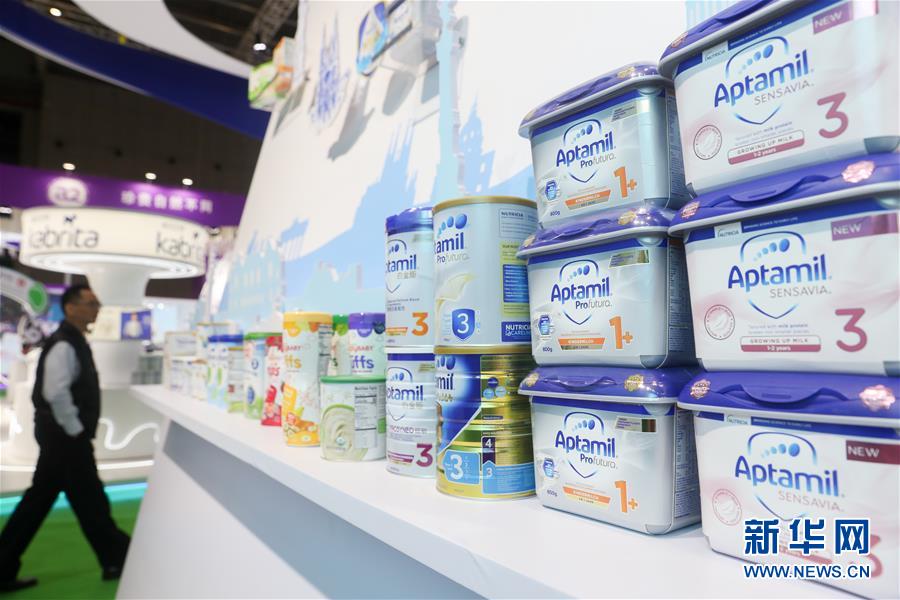 11月5日,在第二屆進(jìn)博會(huì)食品及農(nóng)產(chǎn)品展區(qū),參觀者從達(dá)能展臺(tái)經(jīng)過。新華社記者丁汀攝