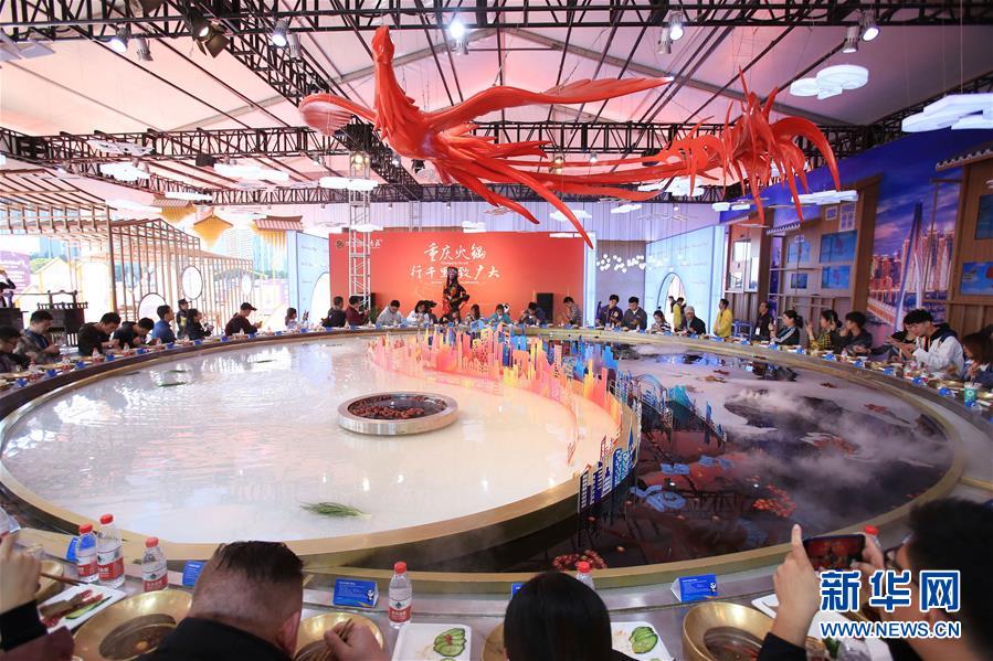 參觀者在第二屆進(jìn)博會上體驗“天下第一大火鍋”試吃活動(11月8日攝)。新華社記者隋先凱攝