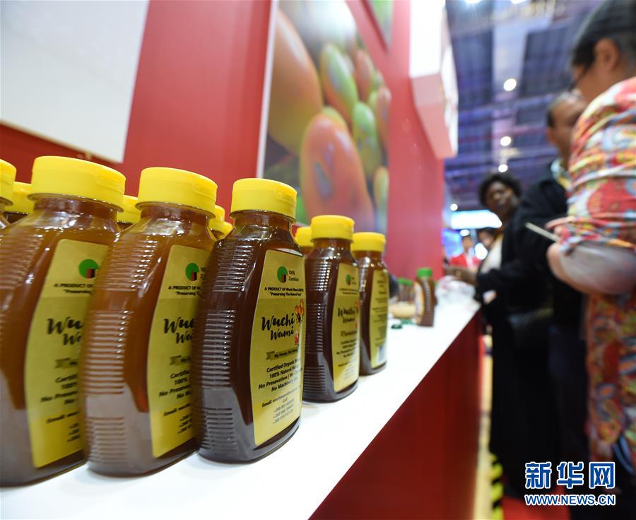 參觀者在第二屆進(jìn)博會上了解贊比亞蜂蜜(11月6日攝)。新華社記者尹炣攝