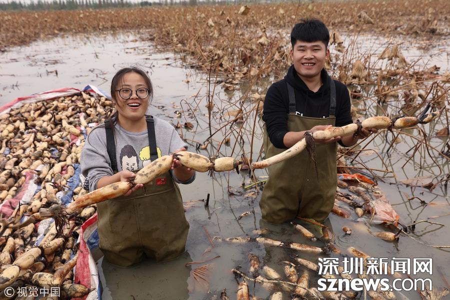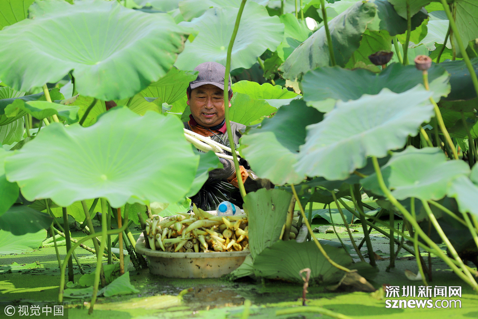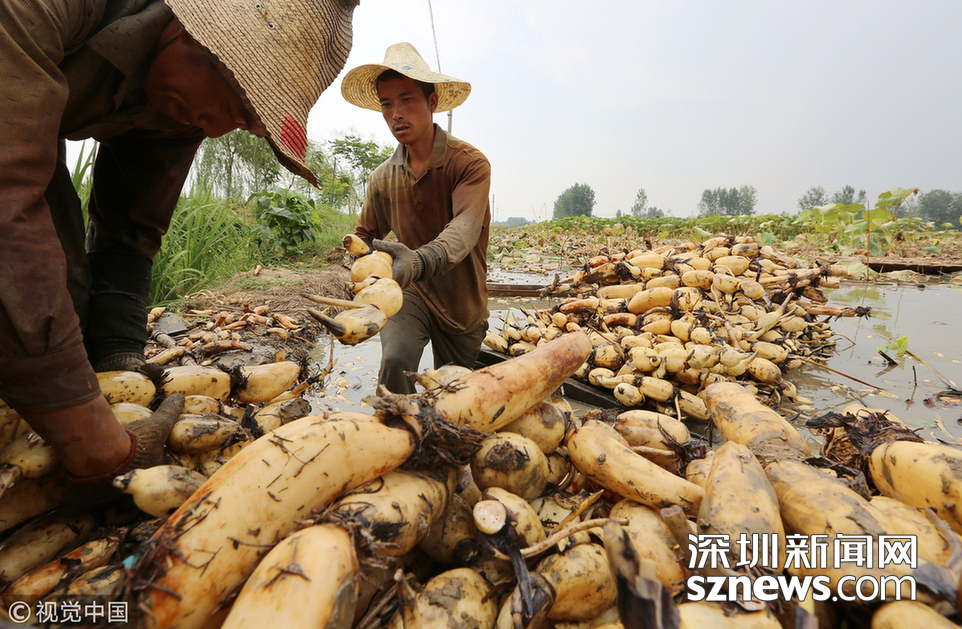 藕農(nóng)泥中“掘金”初秋時節(jié)采藕忙