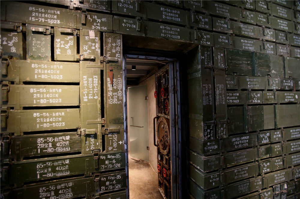 2017年6月18日,河南濟源王屋山“那些年小鎮(zhèn)”一退役兵工廠內(nèi),一處用千余個彈藥箱和軍工零部件打造而成的奇特洗手間驚艷亮相。DF/視覺中國