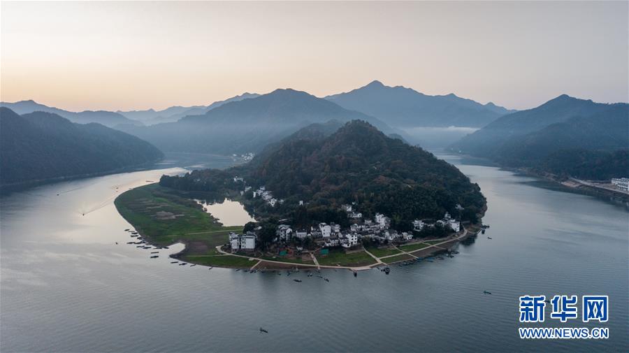 這是11月16日無人機(jī)拍攝的新安江山水畫廊。新華社記者張笑宇攝