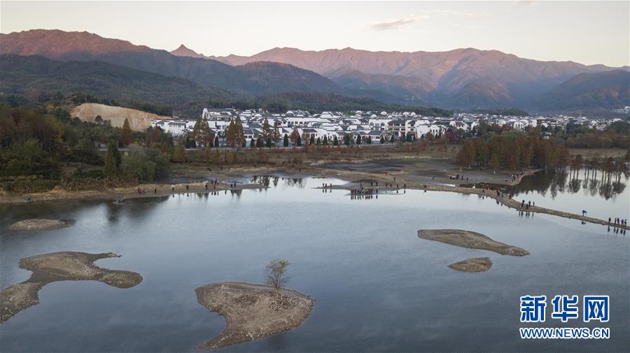 11月14日拍攝的安徽黟縣奇墅湖晨景(無人機(jī)航拍)。新華社記者張笑宇攝