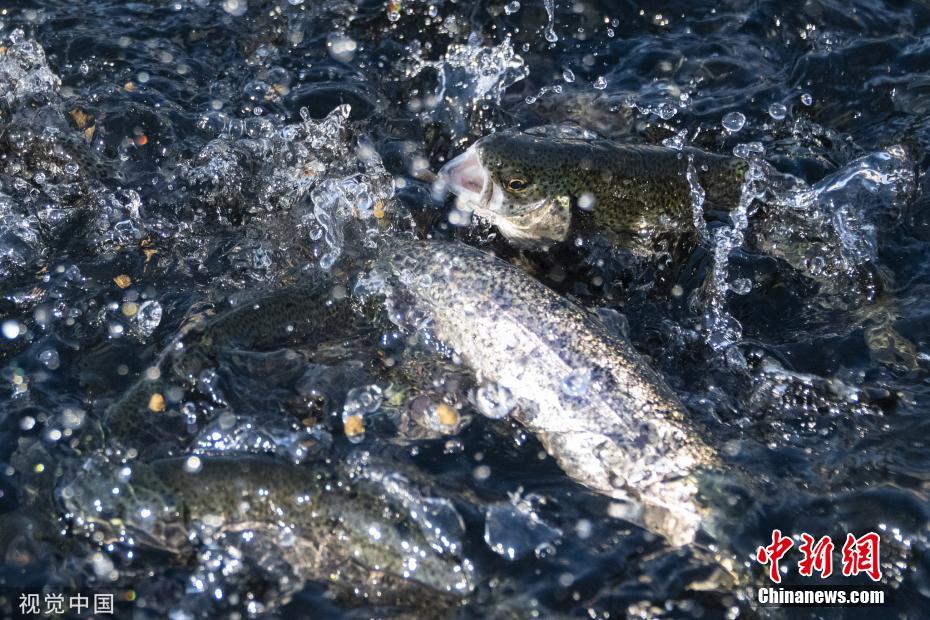 當(dāng)?shù)貢r(shí)間2019年11月17日,美國(guó)加州薩克拉門托,實(shí)拍洄游產(chǎn)卵的鮭魚。