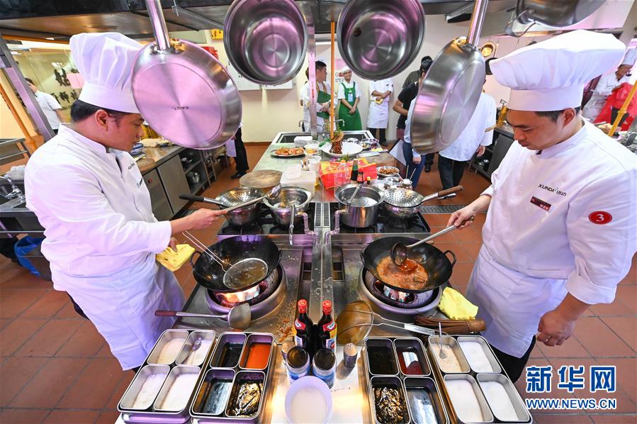 11月20日,在馬來西亞吉隆坡,參賽廚師在制作美食。新華社記者朱煒攝