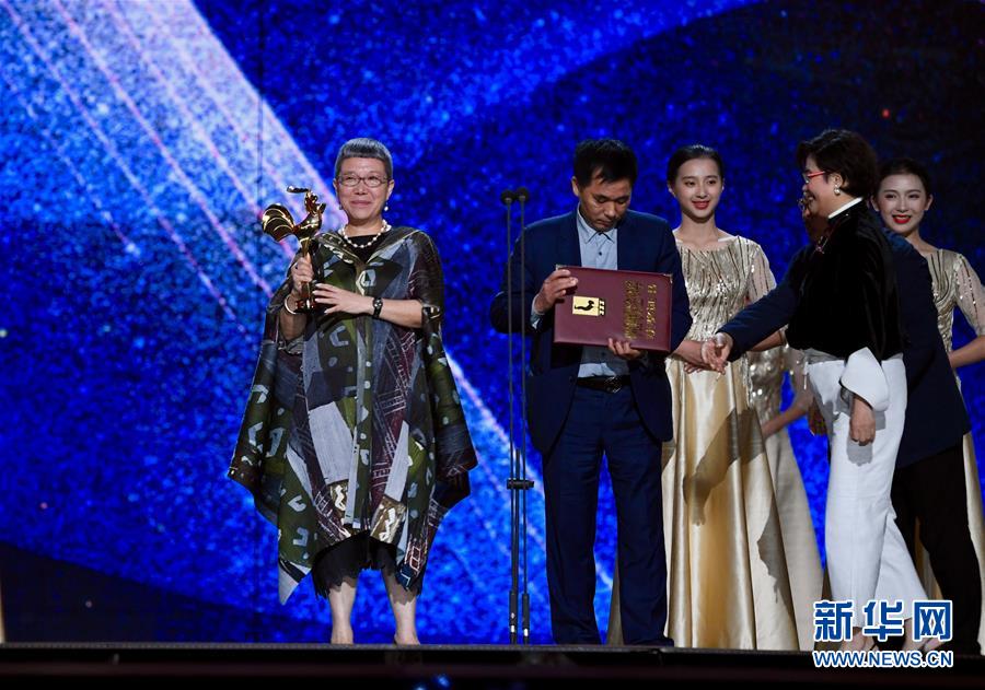 11月23日,電影《地久天長》主演詠梅獲得最佳女主角獎。當(dāng)日,第32屆中國電影金雞獎頒獎典禮在福建廈門舉行。新華社記者姜克紅攝