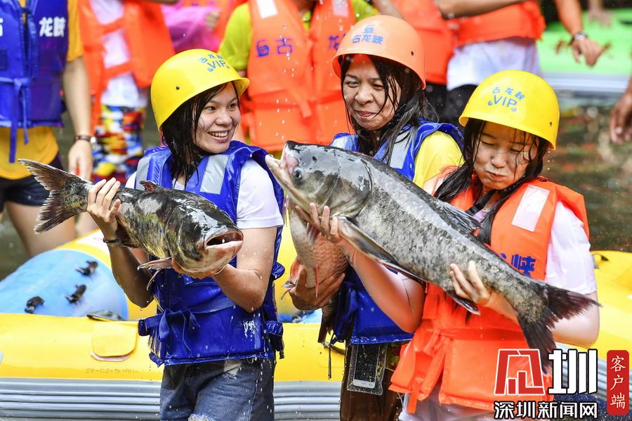 “韋帕”剛登陸廣東,清遠(yuǎn)古龍峽漂流景區(qū)就開始泄洪,上萬斤水庫大魚隨著泄洪道“越獄”,引來上千名游客下艇捕魚,漂流河道上演了幾個小時的“人魚”大戰(zhàn),有的捕魚高手竟然捉了一漂流艇的魚回家。