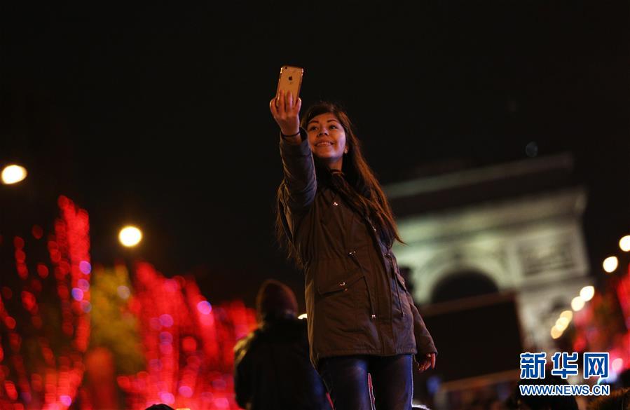 11月24日,在法國巴黎,一名女子在香榭麗舍大街點(diǎn)燈儀式上留影。當(dāng)日,法國巴黎香榭麗舍大街點(diǎn)亮彩燈迎圣誕。從即日起至1月8日,整條香榭麗舍大街都將被喜慶的節(jié)日燈飾點(diǎn)亮。新華社記者高靜攝