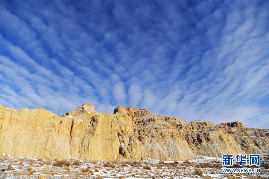 11月26日拍攝的新疆福??h烏倫古湖海上魔鬼城景區(qū)美景。福海縣烏倫古湖海上魔鬼城景區(qū)位于新疆阿勒泰地區(qū)福??h吉力湖東岸,有著獨(dú)特的雅丹地貌和水域景觀,是當(dāng)?shù)刂穆糜蝿俚?。新華社記者沙達(dá)提攝