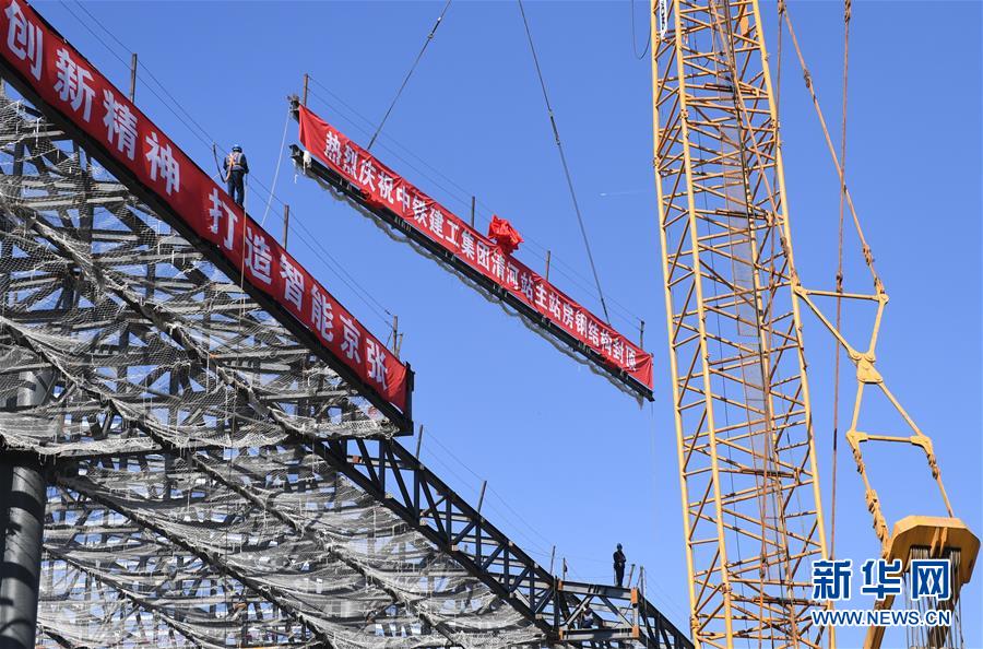 10月17日,工作人員在吊裝最后一組鋼梁。新華社記者張晨霖攝