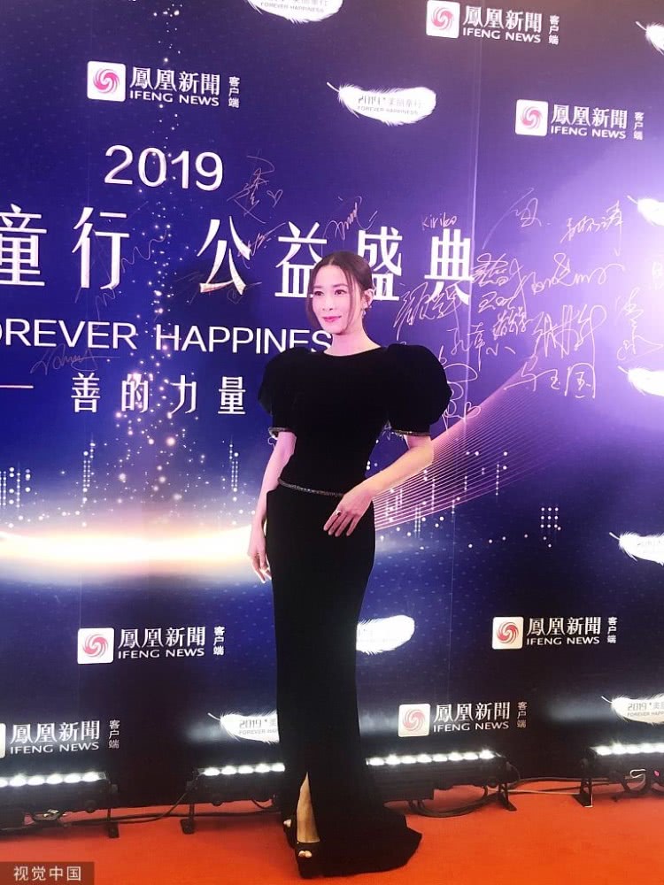 佘詩(shī)曼穿黑禮裙身材姣好氣質(zhì)佳。