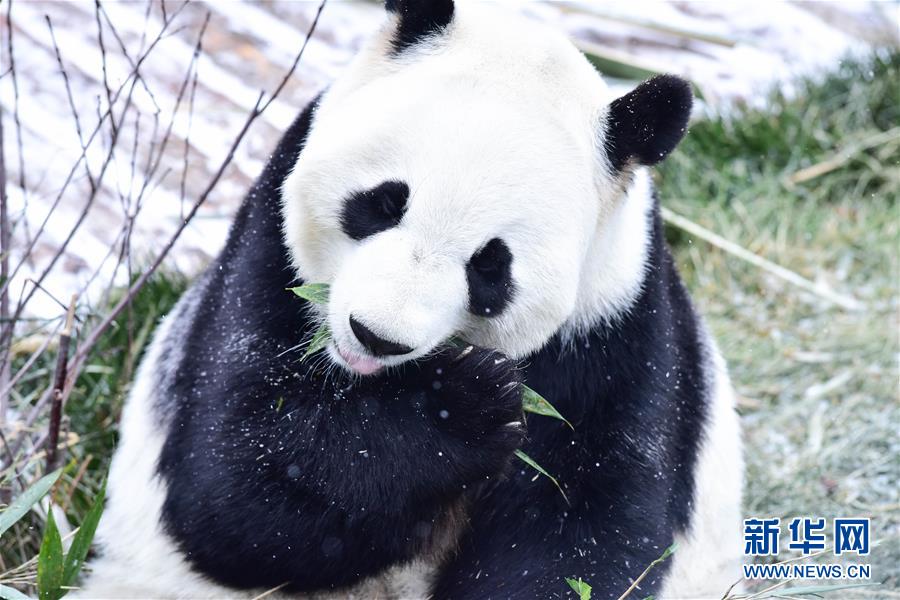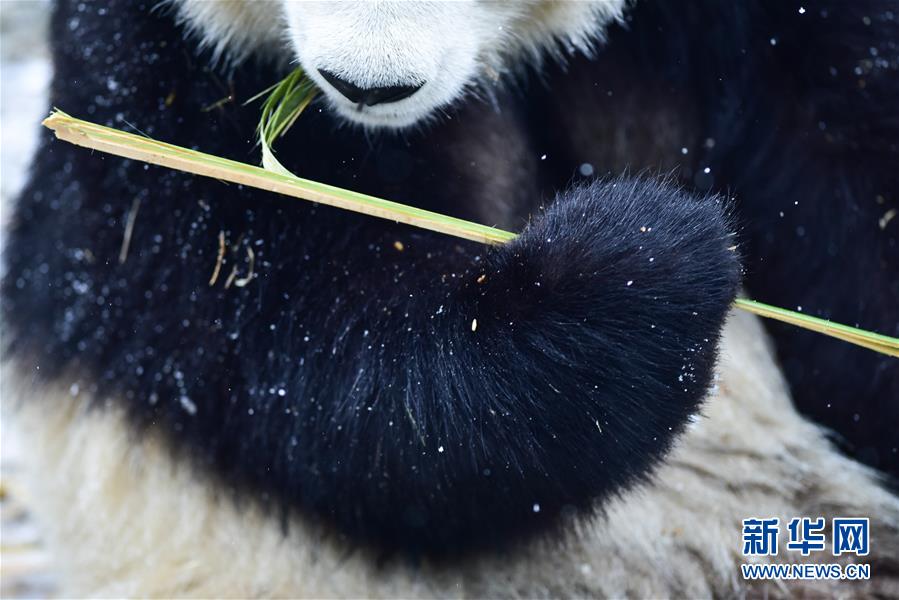 11月29日,在西寧熊貓館內(nèi),兩只大熊貓在吃竹子。 當日,青海省西寧市迎來降雪,西寧熊貓館四只“萌寵”大熊貓在雪天里享受著吃竹子的樂趣。據(jù)了解,大熊貓生活的適宜溫度在26攝氏度至零下5攝氏度之間,冬季氣溫低于零下5攝氏度時,場館會啟用保暖設施。 新華社記者 吳剛 攝