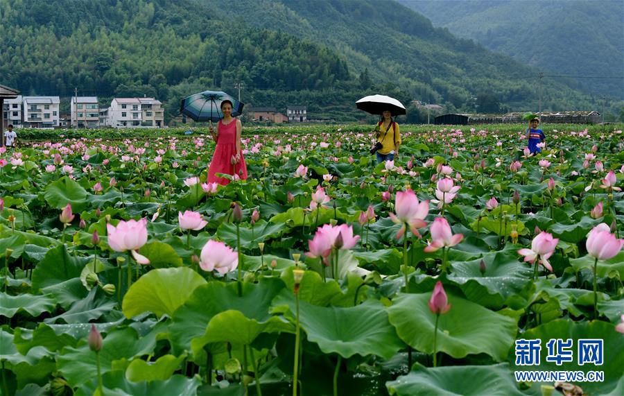 游客在武夷山市五夫鎮(zhèn)萬畝荷田賞荷(7月12日攝)。新華社記者張國俊攝