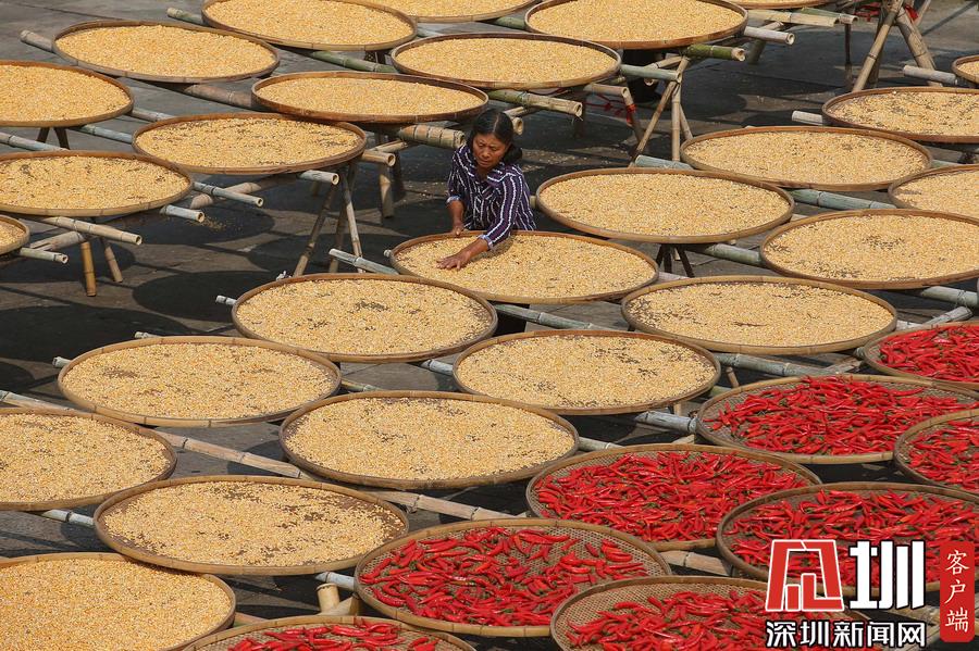 2019年9月9日,安徽黃山,呈坎古村村民在曬場上晾曬農(nóng)作物。