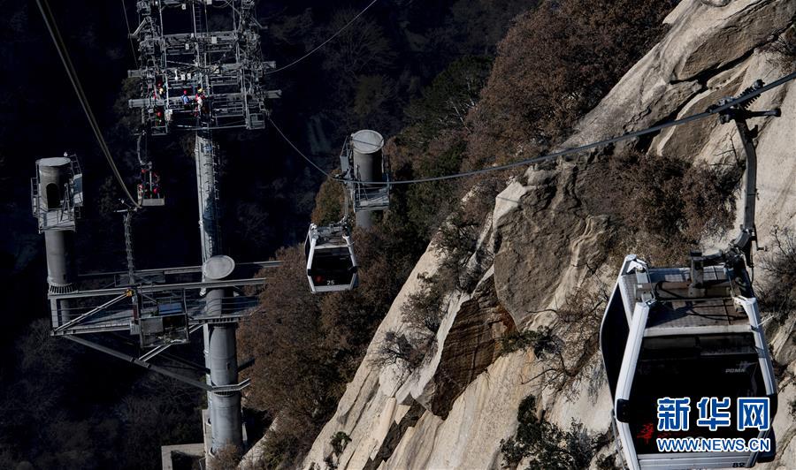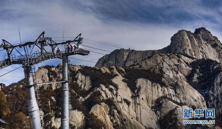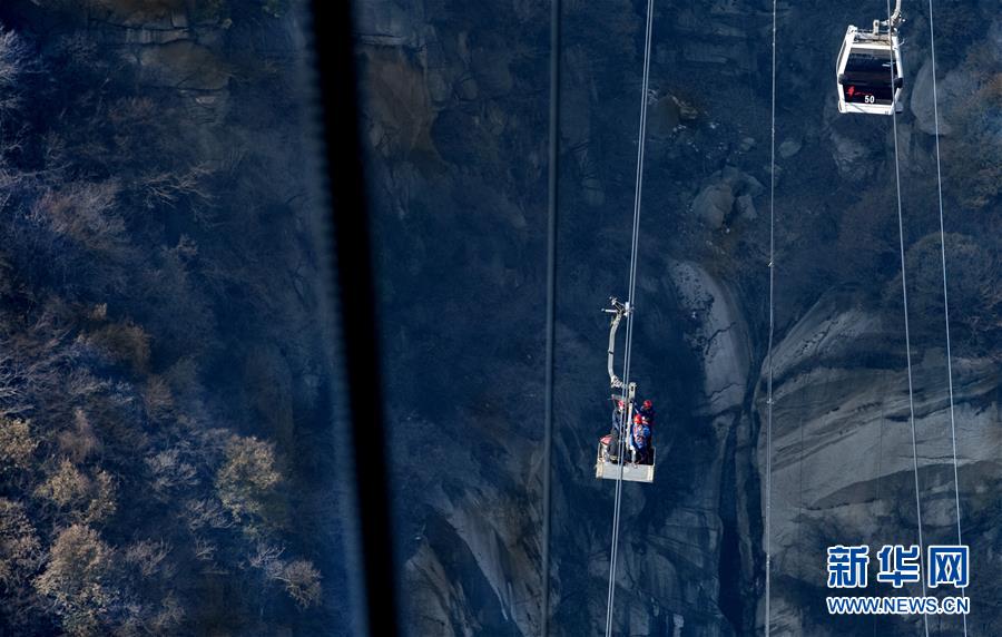 華山太華索道維修人員對索道支架及鋼絲繩進行檢測(12月6日攝)。新華社記者陶明攝