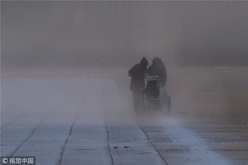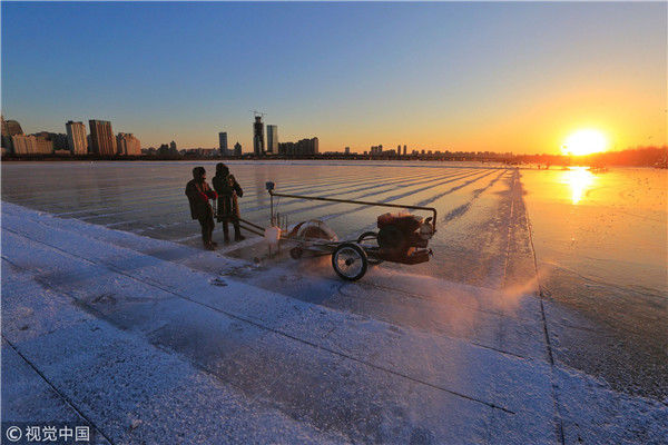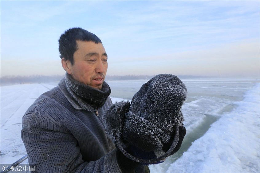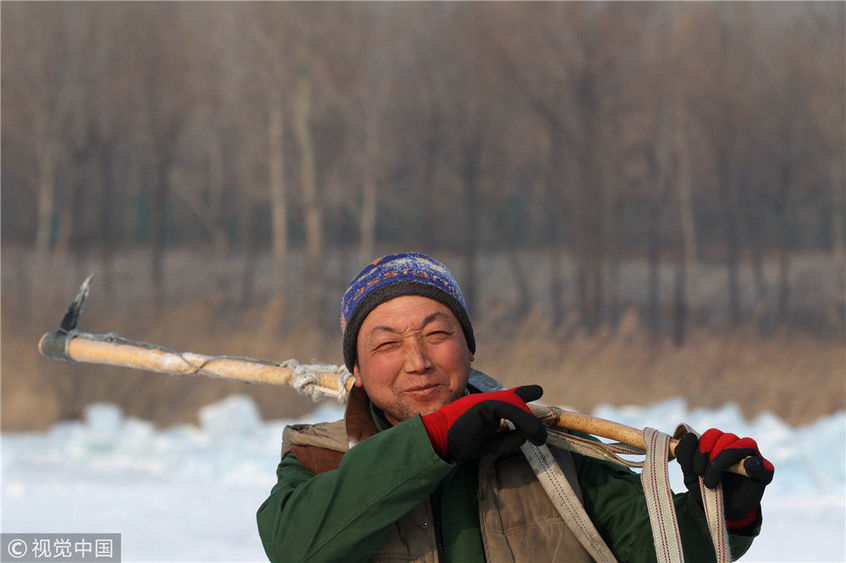 寒冬采冰人:起早貪黑 “淘金”冰雪