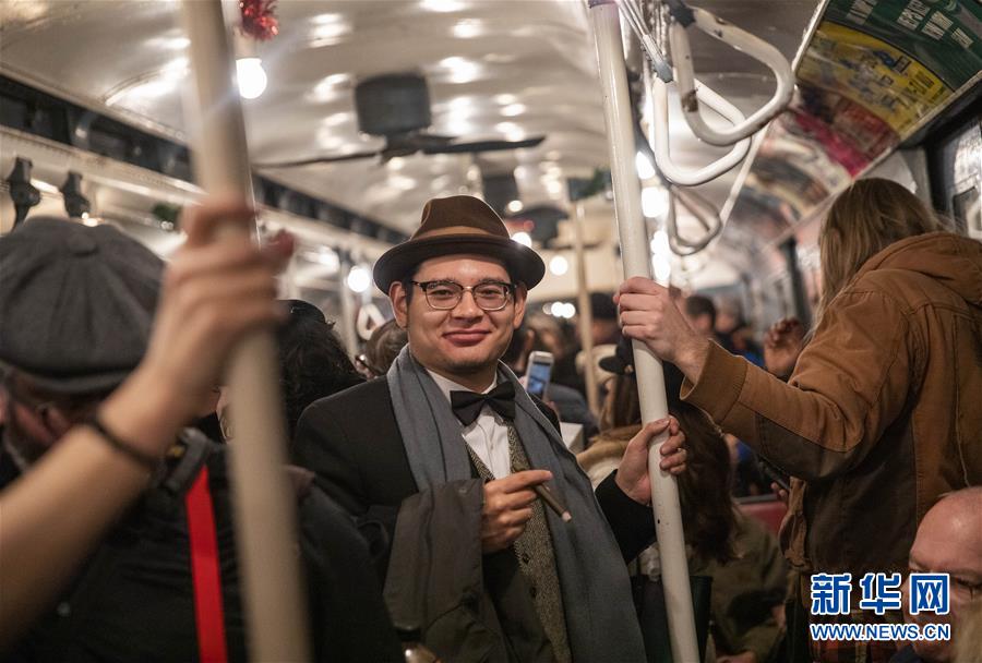 12月8日,在美國紐約,人們搭乘“懷舊專列”。每年感恩節(jié)到新年之間的星期日,紐約地鐵都會用1932年至1977年間使用的老式列車在運(yùn)營的線路上開行特別的“懷舊專列”,人們穿戴舊時服飾專程前來搭乘,體驗時光回溯的奇妙旅程。新華社記者王迎攝