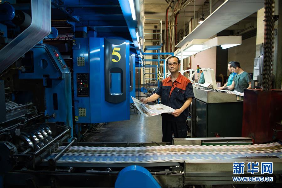 11月27日,澳門日?qǐng)?bào)印刷課副主任袁錦財(cái)在車間內(nèi),他已經(jīng)工作了35年,主要負(fù)責(zé)抽樣質(zhì)檢當(dāng)日?qǐng)?bào)紙。 澳門回歸祖國(guó)二十年,經(jīng)濟(jì)繁榮昌盛,社會(huì)面貌生機(jī)勃勃。這二十年的輝煌成就,離不開(kāi)各行各業(yè)普通勞動(dòng)者的辛勤付出。他們默默無(wú)聞,日復(fù)一日用汗水與堅(jiān)守為澳門社會(huì)貢獻(xiàn)自己的力量。   新華社記者 張金加 攝