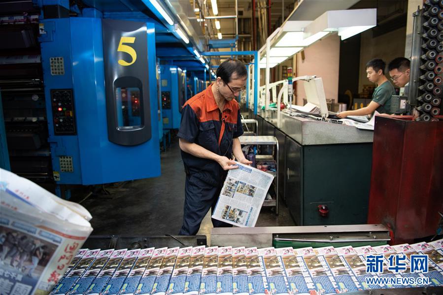 11月27日,澳門日報(bào)印刷課副主任袁錦財(cái)在車間內(nèi),他已經(jīng)工作了35年,主要負(fù)責(zé)抽樣質(zhì)檢當(dāng)日報(bào)紙。  新華社記者 張金加 攝