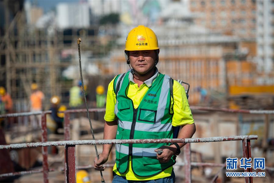 11月22日,澳門工地工人何錦在工地上,他已經(jīng)工作了25年,主要負(fù)責(zé)處理工地事項(xiàng)。 新華社記者 張金加 攝