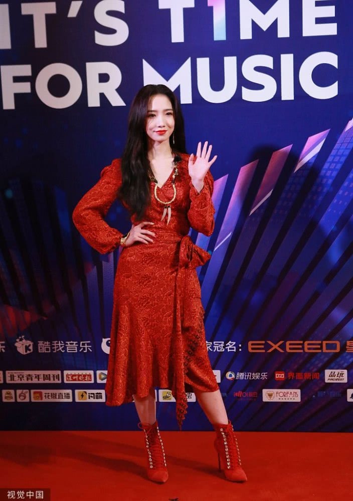 孟美岐身穿大紅色長(zhǎng)裙搭配波浪卷發(fā),大走港風(fēng)美艷動(dòng)人。