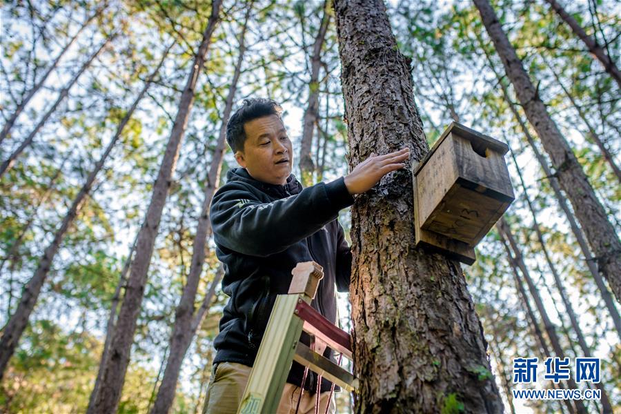 羅康在哀牢山的松樹(shù)林里查看上一批人工巢箱的鳥(niǎo)類入住情況(12月12日攝)。  31歲的羅康是云南省瀾滄縣人,從事鳥(niǎo)類生態(tài)學(xué)研究已有8年時(shí)間。作為中科院鳥(niǎo)類繁殖學(xué)的在讀博士,羅康離開(kāi)城市,一頭扎進(jìn)哀牢山深處,以森林為家,與鳥(niǎo)兒為伴。 羅康在研究過(guò)程中發(fā)現(xiàn),由于松林內(nèi)天然樹(shù)洞很少,導(dǎo)致食蟲(chóng)鳥(niǎo)類(主要為洞巢鳥(niǎo))的繁衍與生存質(zhì)量受到較大影響。查閱大量資料后,他決定學(xué)習(xí)西方國(guó)家應(yīng)用比較廣泛、已有100多年歷史的人工巢箱,為這些鳥(niǎo)兒搭建“別墅”。 目前,羅康已安置人工鳥(niǎo)巢500余個(gè),共有遠(yuǎn)東山雀、綠背山雀、黃頰山雀等7種鳥(niǎo)類入住,總體入住率約25%。他還在部分人工巢箱里裝上攝像頭,用于研究鳥(niǎo)類的生活習(xí)性。 “通過(guò)對(duì)人工鳥(niǎo)巢里的視頻錄像進(jìn)行分析,我們發(fā)現(xiàn)入住鳥(niǎo)類以松毛蟲(chóng)喂食幼鳥(niǎo)的比例非常高?!绷_康表示,安置人工鳥(niǎo)巢不僅能幫助鳥(niǎo)類在森林中安家落戶、繁衍生息,也能有效防治森林病蟲(chóng)害。明年一月底前,他將再安置500個(gè)人工巢箱。 新華社記者 胡超 攝